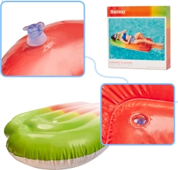 Stilīgs piepūšamais atpūtas matracis saldējuma uz nūjiņas formā uzreiz piesaista uzmanību ar spilgtām krāsām. Tas ir ideāli piemērots atpūtai uz baseina ūdens virsmas un sniedz komfortu arī garākiem cilvēkiem, pateicoties dāsniem izmēriem 185 × 89 cm. Pēc izlaides to ir viegli pārnēsāt, un tas ietilpst somā jebkuram ceļojumam.