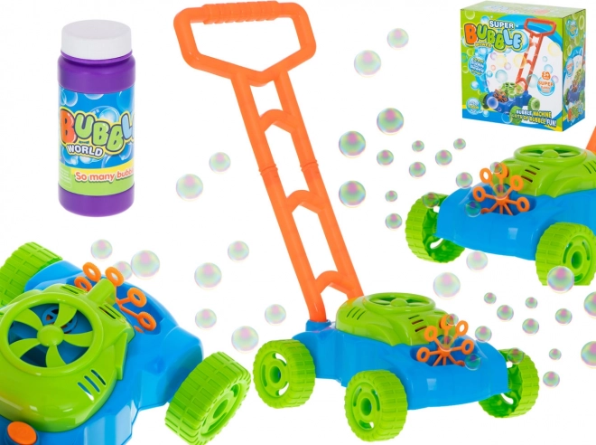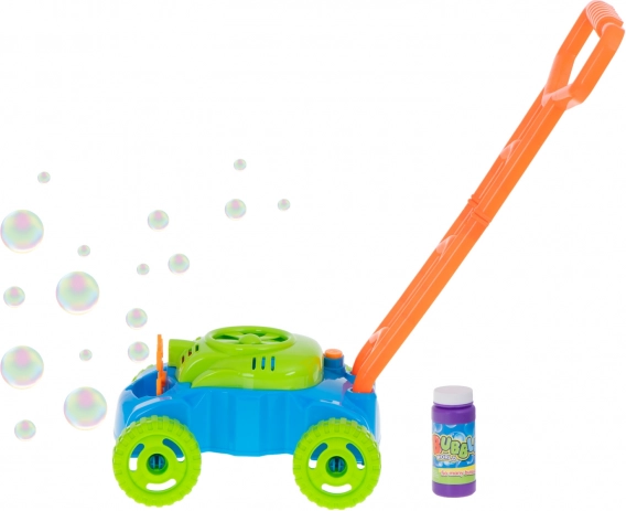 Iedomājieties, kā jūsu bērns saulainā dienā stumj šo burvīgo pļāvēju pa dārzu. Pļāvējs izlaiž burvīgus burbuļus, kas mundrina ik mirkli. Tas ir aprīkots ar 8 riņķiem, kas kustības laikā iemērcas šķīdumā, kamēr mazs ventilators rada vieglu vēju, tā veidojot krāsainus ziepju burbuļus.