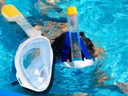 Snorkeļa augšdaļa ir aprīkota ar dry-top mehānismu, kas ierobežo ūdens iekļūšanu no augšas. Masku ir viegli pielāgot ar regulējamām siksnām, bet mīkstais blīvējums patīkami pieguļ sejai. Komplektā ietilpst arī ausu aizbāžņi un turētājs GOPRO darbības kamerai, lai iemūžinātu jūsu zemūdens piedzīvojumus.