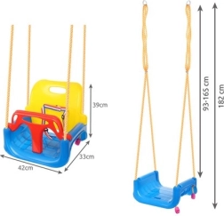 Bērnu šūpoles 3‑in‑1 (T‑stienis, ar atzveltni, plakans sēdeklis)