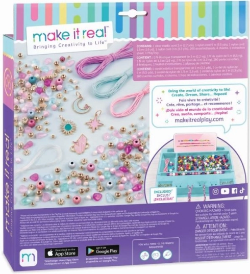 Izveidojiet maģiskas rokassprādzes, iedvesmojoties no debesīm un zvaigznēm. Make It Real Celestial Stones komplektā ir plaša krellīšu, pērlīšu un piekariņu izvēle, pateicoties kurai bērni viegli radīs rokassprādzes pēc savas fantāzijas. Ideāls kopīgai darbošanās reizei ar draugiem vai kā radoša dāvana.