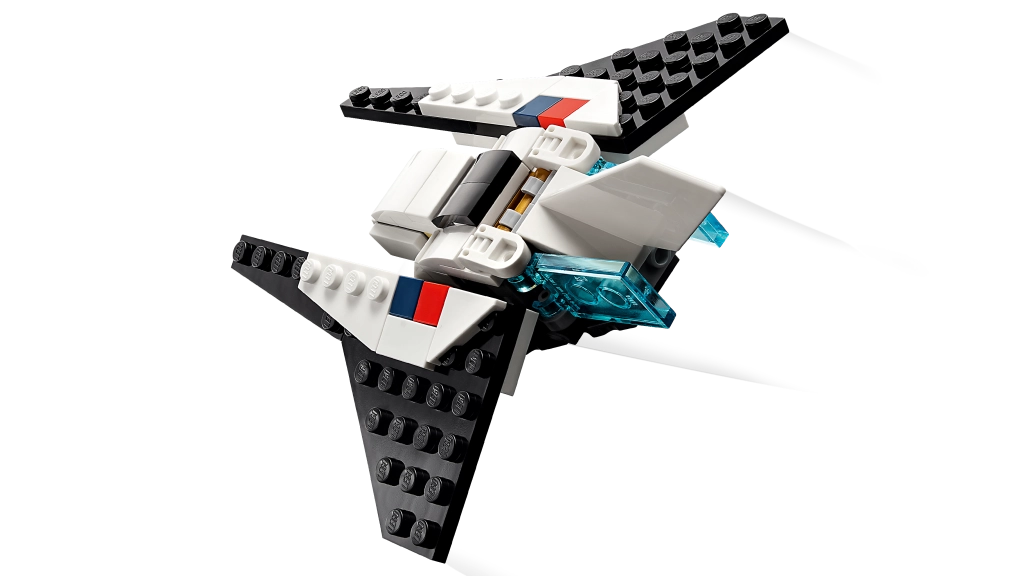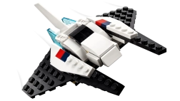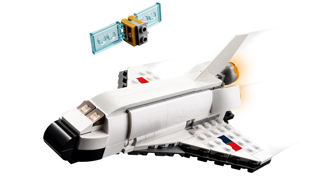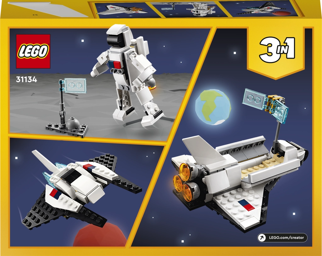 LEGO Creator 3 vienā Kosmiskais raketoplāns ir lielisks konstruktora komplekts bērniem no sešu gadu vecuma, kas piedāvā kosmosa piedzīvojumus. Raketoplānam ir atverams lūks ar satelītu uz izbīdāmas sviras, ko var atvienot atsevišķai spēlei.