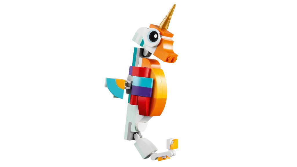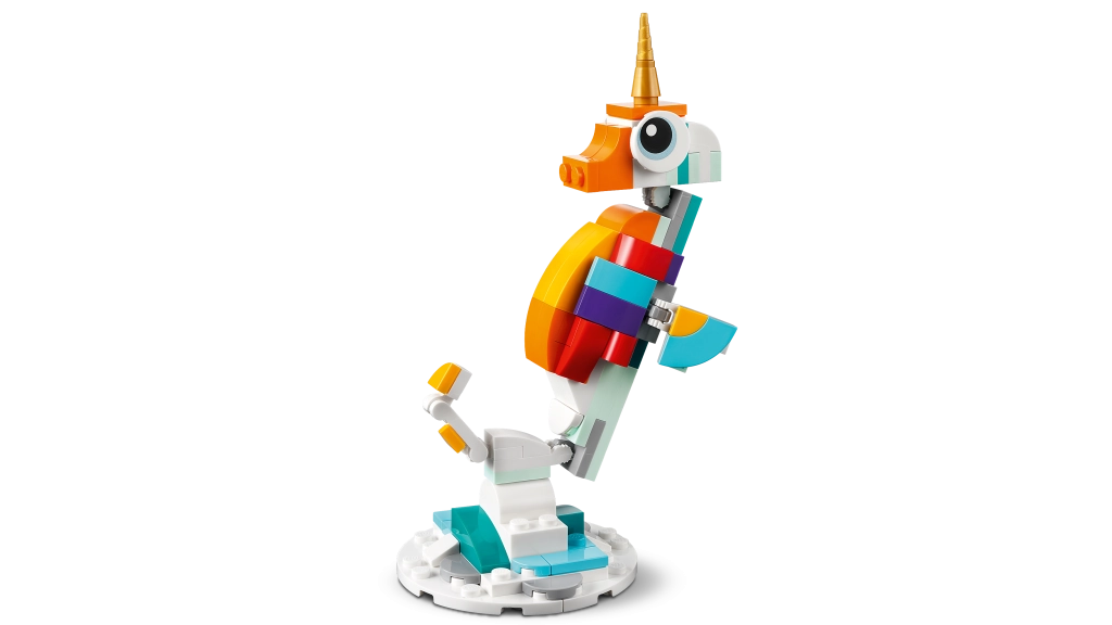 Pateicoties 3 vienā koncepcijai, mazie būvētāji var viegli pārbūvēt modeli: par elegantu jūraszirdziņu ar pamatni, kas atgādina jūras dibenu, vai par pāvu ar krāsainu asti un kustīgām acīm. Komplekts piedāvā nebeidzamus radošus stāstus un iedvesmo brīvai citu jauku radību būvēšanai.