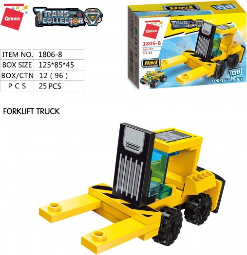 Šis ļoti variablais Qman konstruktors sastāv no košām plastmasas klucīšiem, kurus var kombinēt ar līdzīgiem komplektiem no vadošajiem ražotājiem. Tirdzniecības iepakojumā ir 25 detaļas, kas, saliekot kopā, veido daļu no lielā smagā transportiera modeļa. Pateicoties saderībai ar citiem zināmiem konstruktoriem, piemēram, LEGO, Sluban un Cobi, jūs varat vēl vairāk paplašināt savas radošās iespējas.