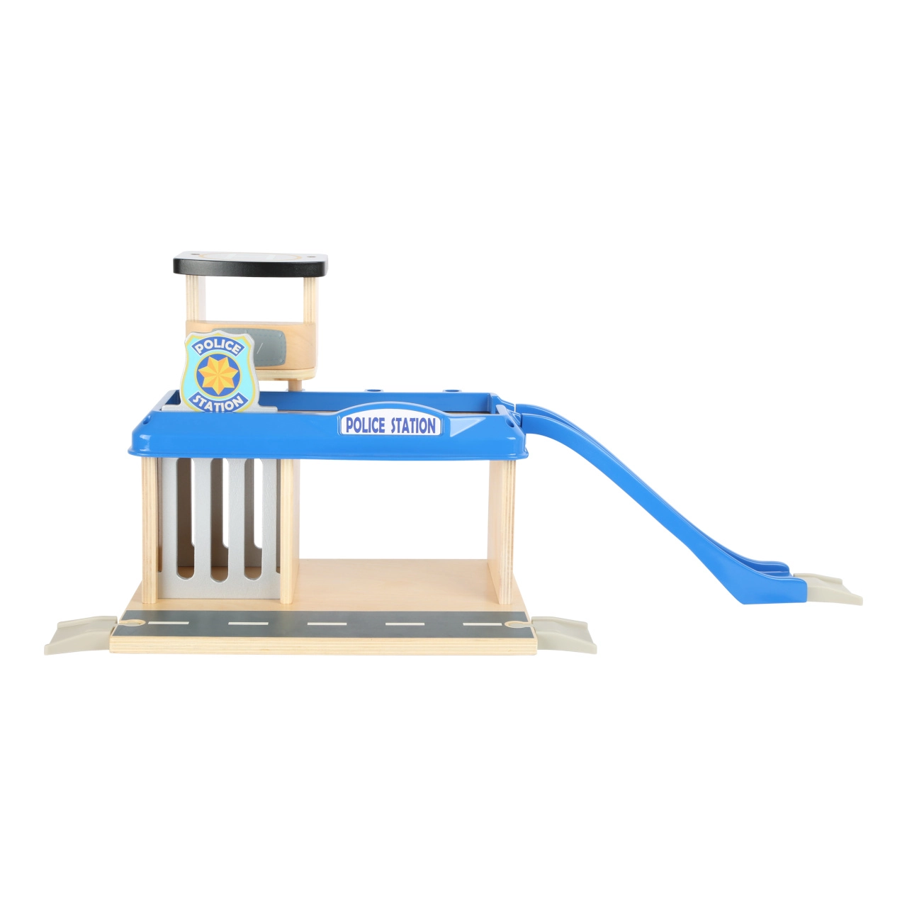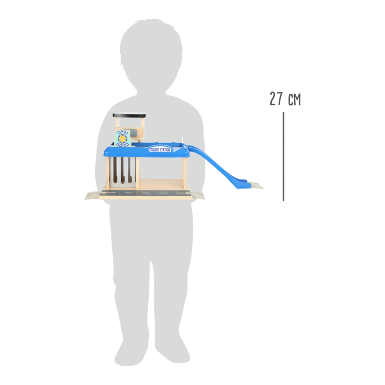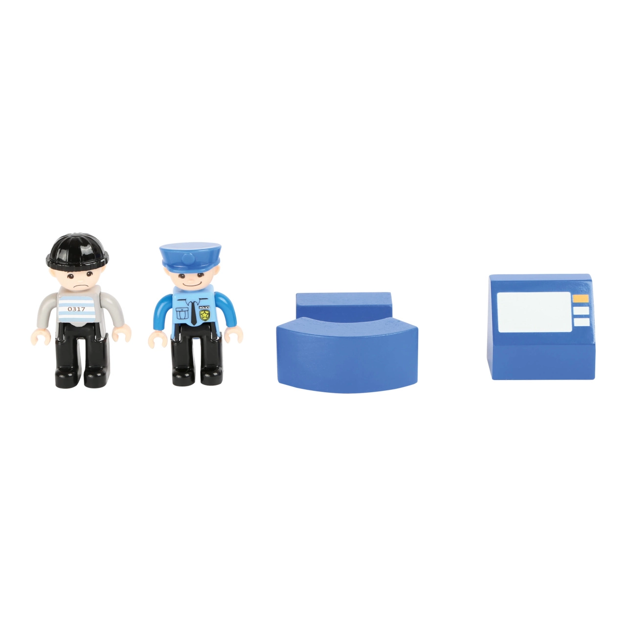 Dāvini bērniem piedzīvojumu pasauli ar šo small foot policijas staciju no 100% FSC® koka. Divstāvu stacija ar torni un helipoliju, cietumu ar izbīdāmu restotu durtiņu un uzbrauktuvi nāk ar bagātīgu komplektāciju: policijas auto, helikopters un divas figūriņas. Izturīgā koka un kvalitatīvas plastmasas kombinācija garantē izturību un ilgmūžību, turklāt komplekts ir savietojams ar citu zīmolu vilcienu trasēm.