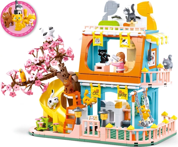 Iegremdējieties fantāzijas pasaulē ar šo Sluban Māju ar Kaķiem. Ideāli piemērots meitenēm, kuras izbaudīs stundām ilgu prieku, saliekot un spēlējoties ar figūriņām un dzīvnieciņiem.