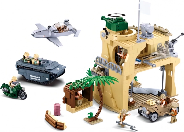 Uzceliet savu militāro bāzi un atdzīviniet leģendāru konfliktu ar 1027 detaļām un 9 figūriņām. Šis detalizētais SLUBAN konstruktors piedāvā cietoksni ar slēptuvēm, militāro džipu, iznīcinātāju, kāpurķēžu transportlīdzekli un motociklu. Detaļas no izturīga ABS plastmasas ir saderīgas ar LEGO, COBI un MEGA BLOKS, iepriecinot ar kvalitāti un lielisku spēlējamību.