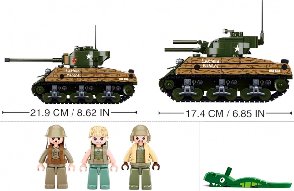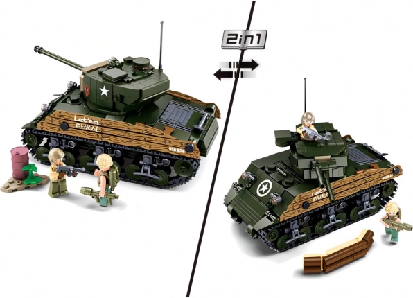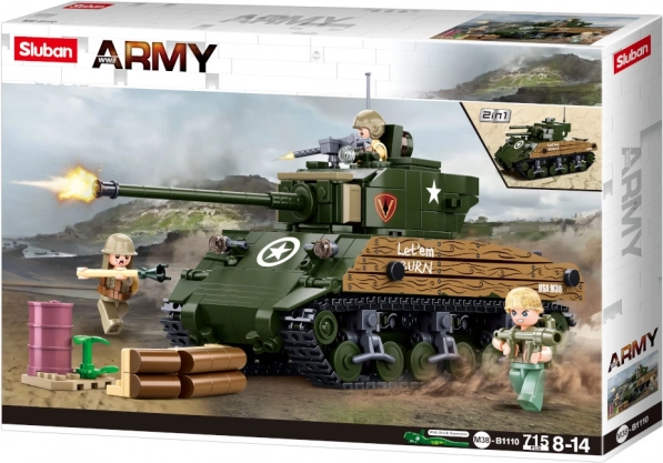 Uzbūvējiet leģendāro amerikāņu tanku M4A3 Sherman un izbaudiet stundām ilgu izklaidi ar Sluban Army WW2 komplektu. Komplektā ir 2 montāžas varianti, 715 detaļas un 3 figūriņas ar kustīgām daļām. Detaļas ir saderīgas ar LEGO, COBI un Mega Bloks un izgatavotas no izturīga, droša ABS plastmasas.