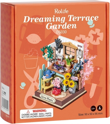 Atklājiet precīzu miniatūru pasauli un atslābinieties, saliekot burvīgu terases dārzu. Rolife komplekts ir ar iepriekš krāsotām komponentēm, kas precīzi sader kopā, un saprotamu instrukciju. Dažu stundu laikā izveidosiet detalizētu diorāmu, kas pilna ar ziediem, aksesuāriem un sīkiem dārza rīkiem – lieliska dāvana radošiem cilvēkiem un kolekcionāriem.