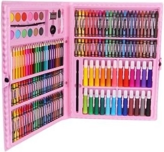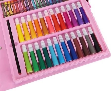 Šis bagātīgi aprīkotais komplekts piedāvā visu, kas bērniem un iesācējiem māksliniekiem nepieciešams fantāzijas un sīko motoriku attīstīšanai. 168 detaļas, rūpīgi sakārtotas izturīgā koferītī, nodrošina kārtību, ātru krāsu izvēli un ērtu pārnēsāšanu. Piemērots bērniem no 3 gadu vecuma.