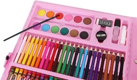 Pilns mākslas komplekts praktiskā rozā koferītī ar 168 detaļām gan maziem, gan lieliem radošajiem. Tajā atradīsiet zīmuļus, flomāsterus, vaska krītiņus, eļļas pasteļus, akvareļus un noderīgus piederumus, tostarp papīru un paleti. Pateicoties pārskatāmajām nodalījumiem un rokturim, ideāli piemērots mājās, skolā un ceļā.