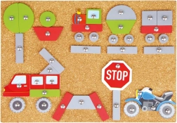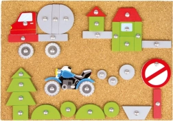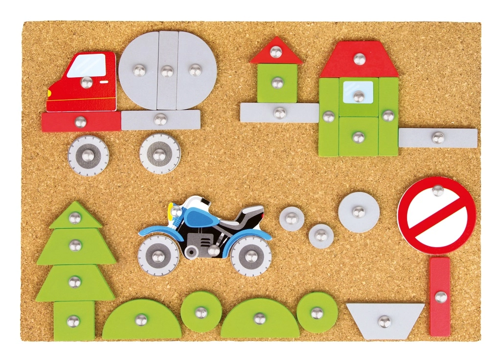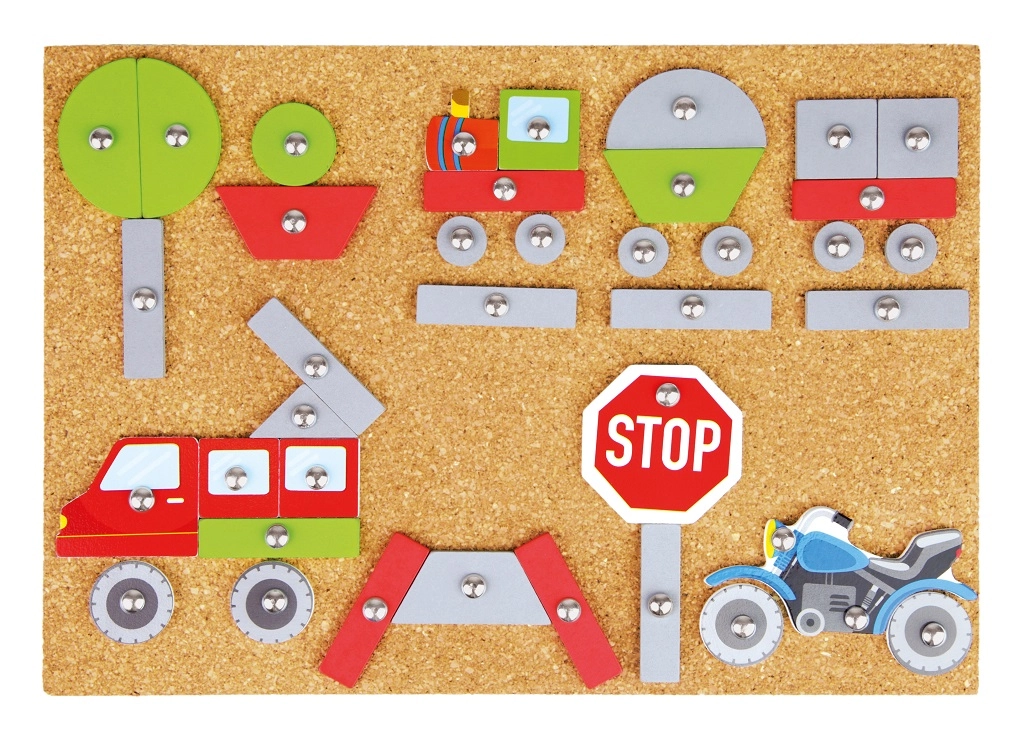 Šī jautrā un izglītojošā naglojamā rotaļa ir ideāli piemērota mazajiem radošajiem prātiem. Bērni var izstrādāt savus transportlīdzekļus un pienaglot tos pie korķa plāksnes ar āmuriņa un nagliņu palīdzību. Krāsainie un apdrukātie elementi piedāvā neskaitāmas kombinācijas un veicina iztēli.
