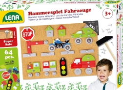 Atklājiet radošo pasauli ar LENA bērnu komplektu transportlīdzekļu veidošanai. Ar korķa plāksni, āmuriņu un krāsainajiem elementiem bērni attīsta radošumu, sīko motoriku un koncentrēšanos. Komplekts ļauj veidot dažādas auto, vilcienu vai kuģu formas un droši tās pienaglot ar sīkiem nagliņiem.