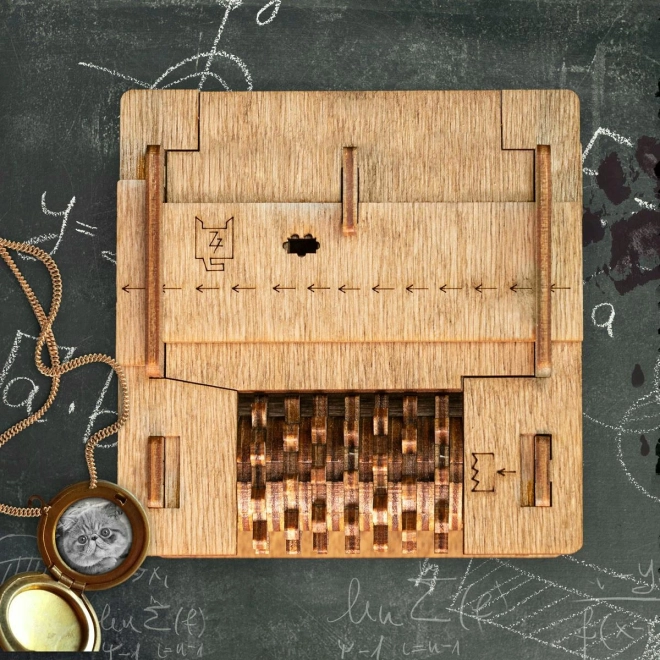 Ieniriet domu eksperimentā Schrödingerova kaķis un atklājiet noslēpumu, kas slēpjas elegantā koka kastītē. Jūs sagaida veikls mīklu un mehānisku elementu salikums, kas pārbaudīs jūsu atjautību un pacietību. Mīkla ir rūpīgi izgatavota no kvalitatīva bērza koka, un atsevišķās detaļas ir precīzi izgrieztas ar modernu lāzertehnoloģiju.