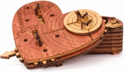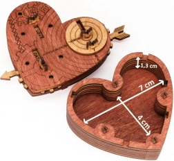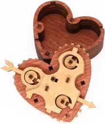 Šī stilīgā sirds ar zobratiem un gravējumu slēpj viedu kodēšanas mehānismu. Pēc pareizo trīs vārdu iestatīšanas pietiek pavilkt aiz bultiņas, un vāciņš atveras. Sirdi var izmantot kā drošu ietvaru sīklietai, personiskam vēstījumam vai kā dizaina galvaslauzni ekspozīcijai.