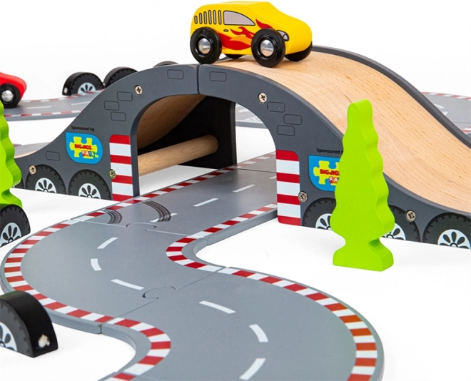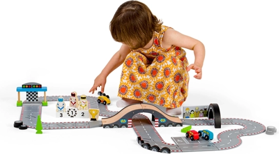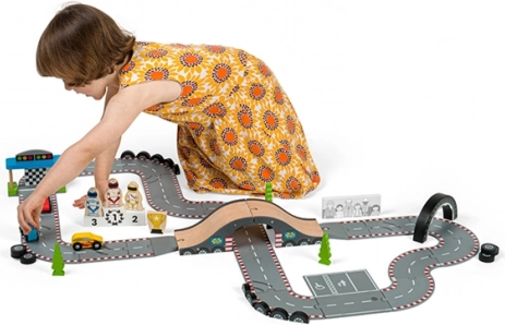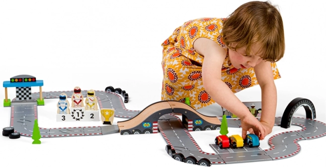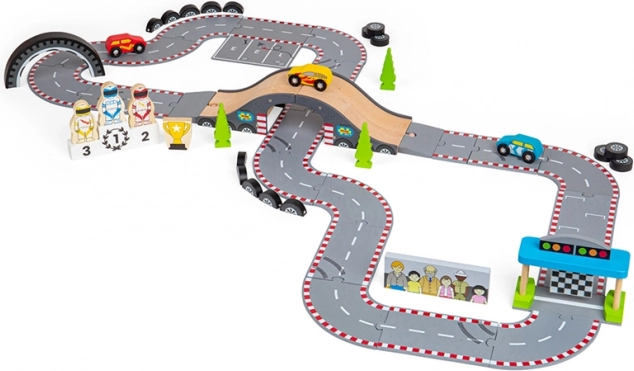 Spēlēšanās ar šo autodromu palīdz attīstīt kustību koordināciju, sīko motoriku un veicina iztēli. Izgatavots no augstas kvalitātes izejmateriāliem saskaņā ar spēkā esošajiem Eiropas drošības standartiem. Var kombinēt ar citiem Bigjigs Rail komplektiem, paplašinot spēļu iespējas.
