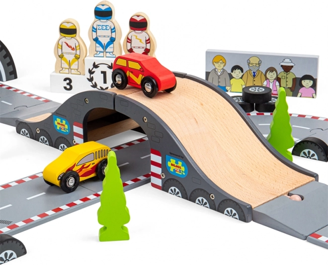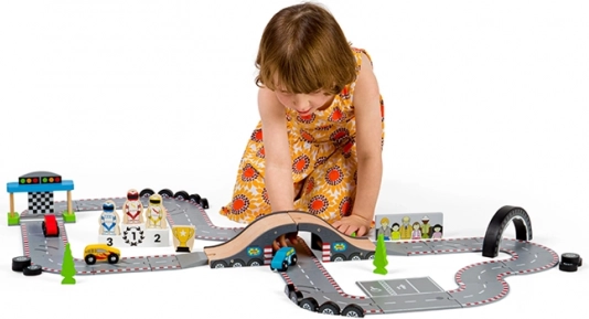 Atklājiet klasisko sacīkšu burvību ar šo skaisto koka autodromu no Bigjigs Rail. Autodroms ietver: