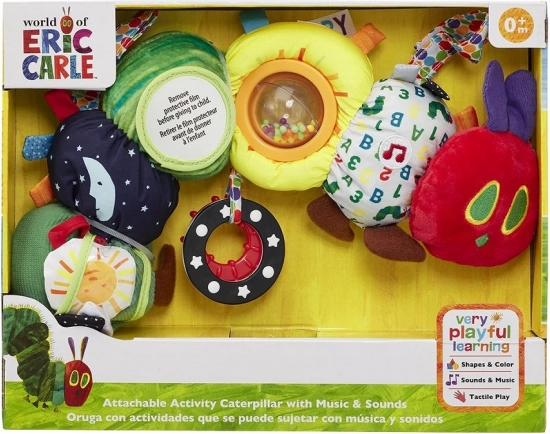 Iemīļotais tēls no pasakas Ļoti izsalkusī kāpurs atdzīvojas kā koša tekstila mīkstā rotaļlieta pilna ar aktivitātēm, kas stimulē sajūtas, atbalsta agrīnu attīstību un trenē sīko motoriku. Kāpurs locās, grab un atskaņo šūpuļdziesmu “Mirdzi, mirdzi, maza zvaigzne”. Pateicoties dažādām tekstūrām, spogulītim, birkām un piestiprināmam gredzenam, tas izklaidēs mazuli gan mājās, gan ceļā.