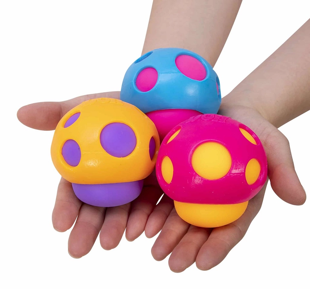 Spiežamā sēne NEE DOH Groovy Shroom no SCHYLLING ir aizraujoša antistresa rotaļlieta sēnes formā ar krāsainām atverēm, caur kurām, saspiežot, izspiežas mīksts iekšpildījums. Tā sniedz spēcīgu taustes pieredzi, palīdz nomierināt prātu un fokusēt uzmanību mācībās, darbā un atpūtā.