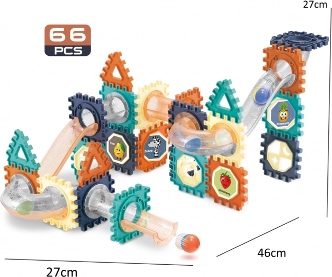 Pateicoties interaktīvām spēlēm, varat baudīt bumbiņu ātruma sacensības vai domino efektu. Bumbiņtrase attīsta telpisko iztēli, loģisko domāšanu un koncentrēšanos – ideāli gan individuālai, gan grupu spēlei.