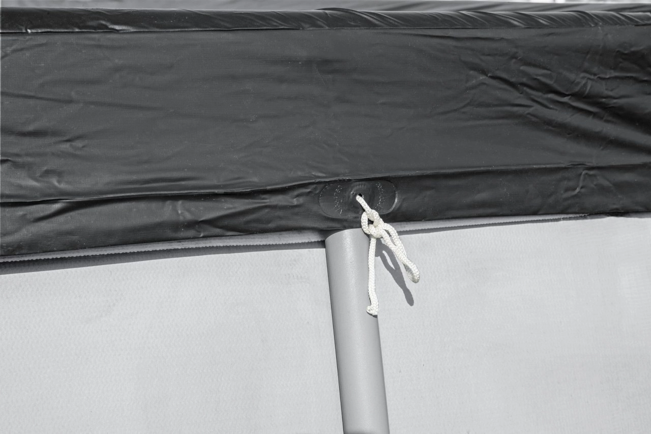 Pateicoties iekļautajām virvēm, pārsegu var droši piestiprināt un nodrošināt pastāvīgu baseina aizsardzību.