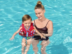 Veste paredzēta lietošanai tikai ūdenī pieaugušo uzraudzībā. Krāsainais dizains un iemīļotie tēli iepriecinās katru bērnu un padarīs uzturēšanos ūdenī vēl patīkamāku.