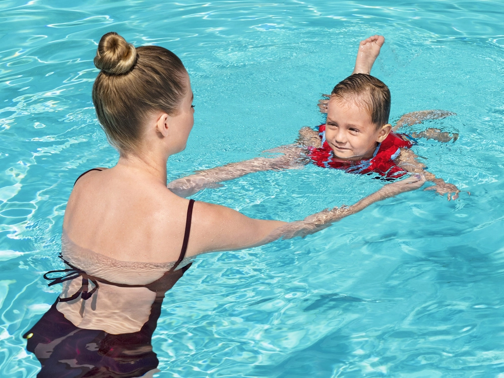 Bērnu peldēšanas veste ir izstrādāta, lai nodrošinātu drošību un vienlaikus maksimālu komfortu ūdens aktivitāšu laikā. Veste ir aprīkota ar priekšējo rāvējslēdzēju un regulējamu siksnu drošībai. Pateicoties vieglam tekstila materiālam ar UPF 50+, kas ir izturīgs pret izbalēšanu, veste ir ideāli piemērota visiem peldēšanas cienītājiem.