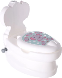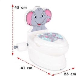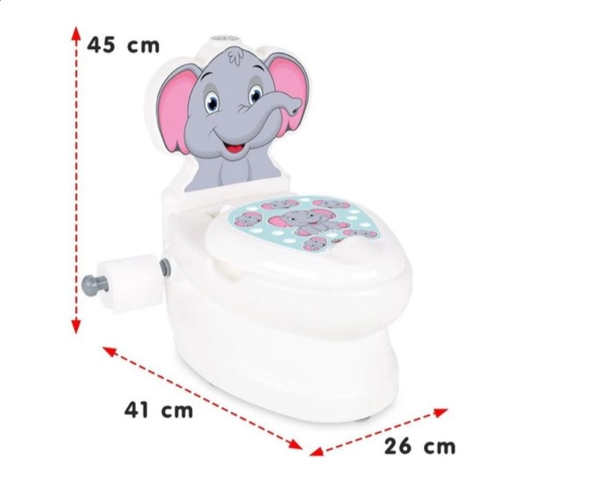 Podiņš īstas tualetes formā ar ziloņa motīvu pārvērš apmācību par jautru nodarbi. Pateicoties ergonomiskajam sēdeklim un stabilajam izpildījumam, bērni jūtas droši un ērti, kas veicina regulāru lietošanu un ātrāku pāreju no pamperiem.