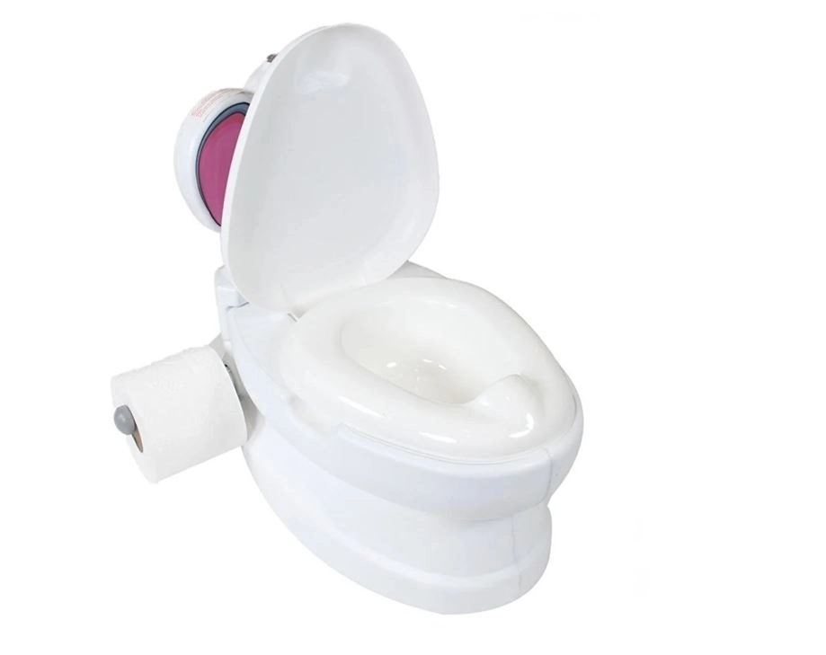 Bērns atdarina pieaugušos un dabiski pāriet no pamperiem uz tualeti, pateicoties vākam, sēdeklim un rokturim, kas imitē noskalošanu.