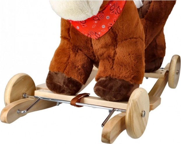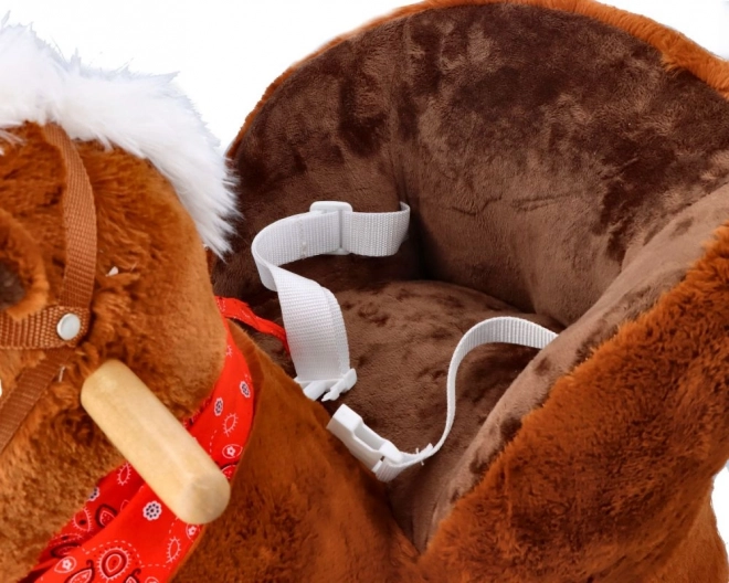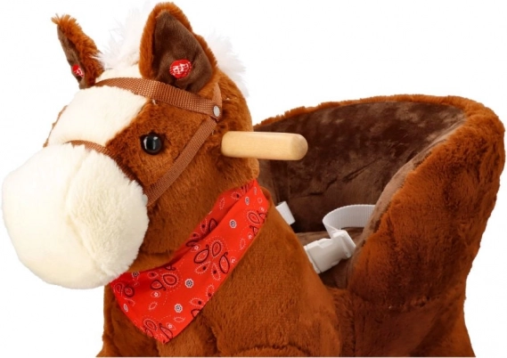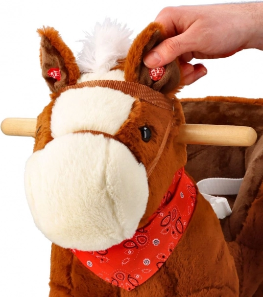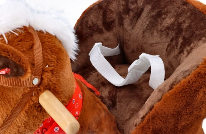 Veidots ar uzsvaru uz drošību un komfortu, tas ir aprīkots ar mīkstu sēdeklīti aptuveni 20 x 14 cm dziļumā, kas nodrošina ērtu sēdēšanu šūpojoties. Rotāts ar baltu krēpi un sarkanu lakatiņu, šis zirdziņš piedāvā ne tikai izklaidi, bet arī stilu.