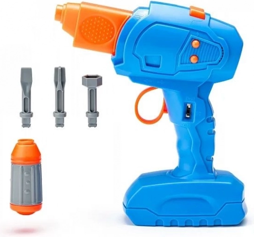 Komplektā ietilpst bērnu urbis ar vienkāršu lietošanu un maināmiem uzgaļiem. Bērni izbaudīs reālistisku montāžas sajūtu, trenēs satvērienu un acu–roku koordināciju.