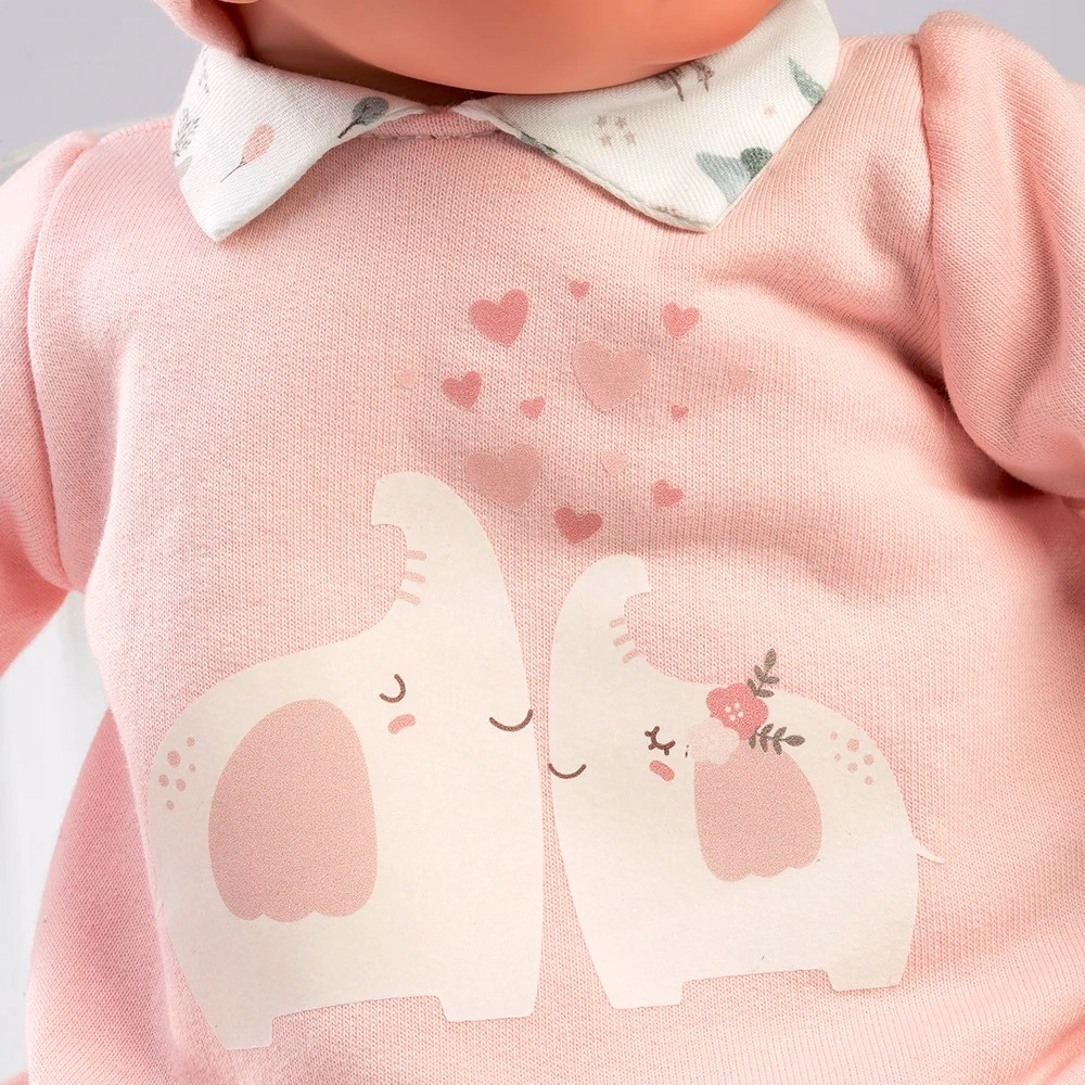 Mīlīgais mazulītis Joelle no zīmola Llorens priecēs ar kvalitatīvu izpildījumu un realistiskām detaļām. Tai ir mīksts vēderiņš patīkamai samīļošanai, vinila rociņas, kājiņas un galviņa ar maigu tonējumu, skropstām un mirdzošām acīm. Apģērbs ir šūts no organiskās kokvilnas, vilnas un pārstrādātiem materiāliem. Lieliska dāvana bērniem ar izglītojošu un rotaļu funkciju.