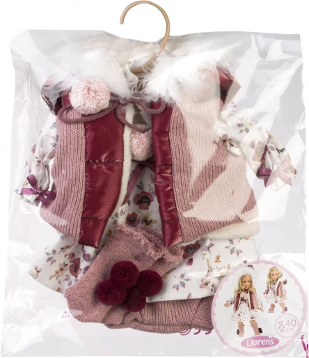 Elegantais 4 daļu tērps Llorens lellēm 40 cm izmērā, roku darbs Spānijā. Ideāls aksesuārs mazajām leļļu mīļotājām.