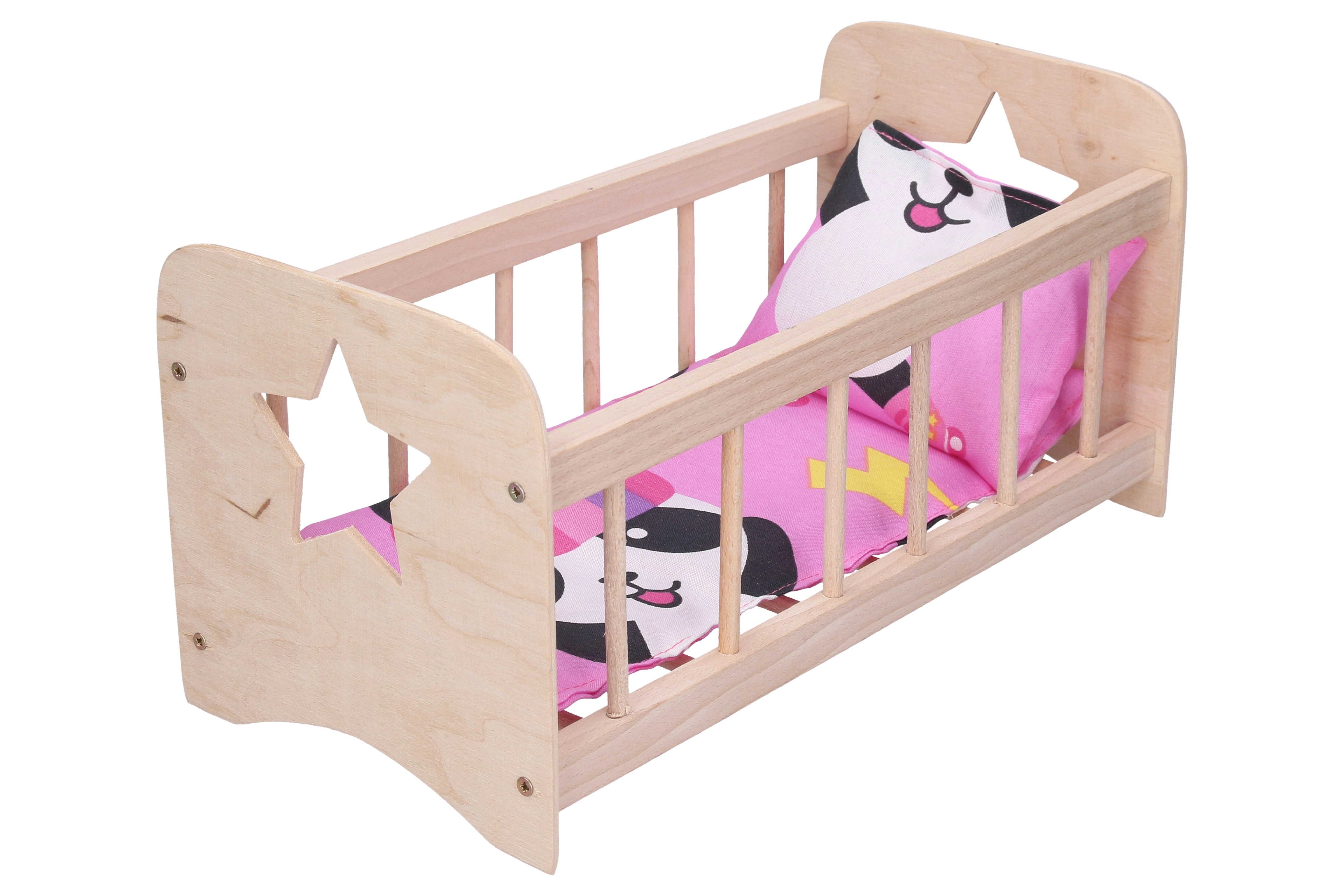 Mīlīga koka leļļu gultiņa ar izmēriem 30 × 15 cm iepriecinās ikvienu mazo gādīgo saimnieci. Tai ir stingra konstrukcija un tā ir ideāli piemērota ģimenes spēlēm, leļļu ielikšanai gulēt un iztēles attīstīšanai. Stabila izgatavošana, kompakts izmērs un drošas noapaļotas malas padara to par lielisku papildinājumu bērnistabai.