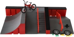 - Pilns komplekts: rampa, kāpnes ar reila stieni, pirkstu skrituļdēlis un mini BMX ritenis