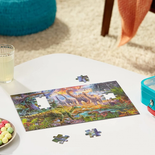 Atklājiet burvīgo dinozauru pasauli ar šīm krāsainajām puzlēm. Katrs motīvs jūs aizvedīs laikā, kad Zemi pārvaldīja dinozauri, pateicoties unikālam dizainam un detalizētam zīmējumam. Puzles ir ievietotas izturīgā metāla koferītī, kas atvieglo pārnēsāšanu un kārtības uzturēšanu pēc katras spēles.