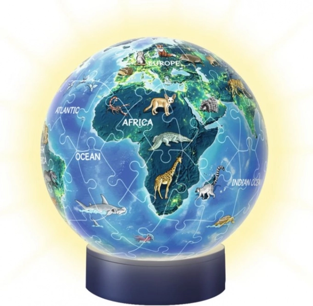 3D puzzleball Nakts globuss no zīmola Ravensburger ir inovatīva saliekama rotaļlieta, kas iepriecina katru dienu. Katrs no 72 plastmasas gabaliņiem ir ideāli veidots, lai izveidotu stabilu bumbu bez līmes.